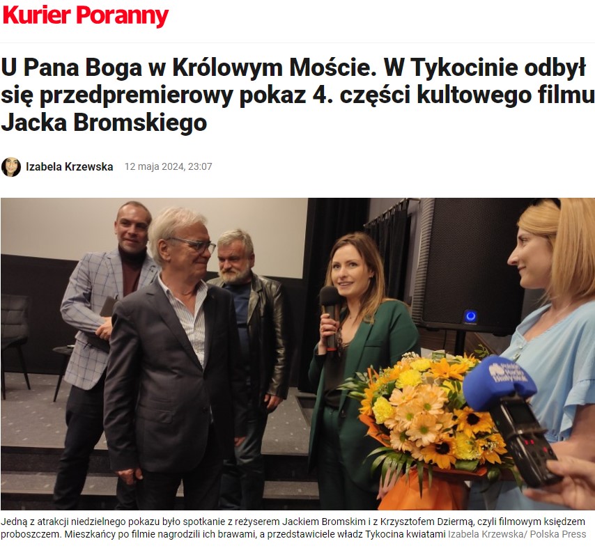 W najbliższą niedzielę 12 maja 2024 roku w kinie Hetman w Tykocinie odbędzie przedpremierowy pokaz filmu Jacka Bromskiego „U Pana Boga w Królowym Moście”. Sceny do filmu były kręcone w Tykocinie (stąd miejsce przedpremierowego pokazu) i innych miejscowościach na Podlasiu.